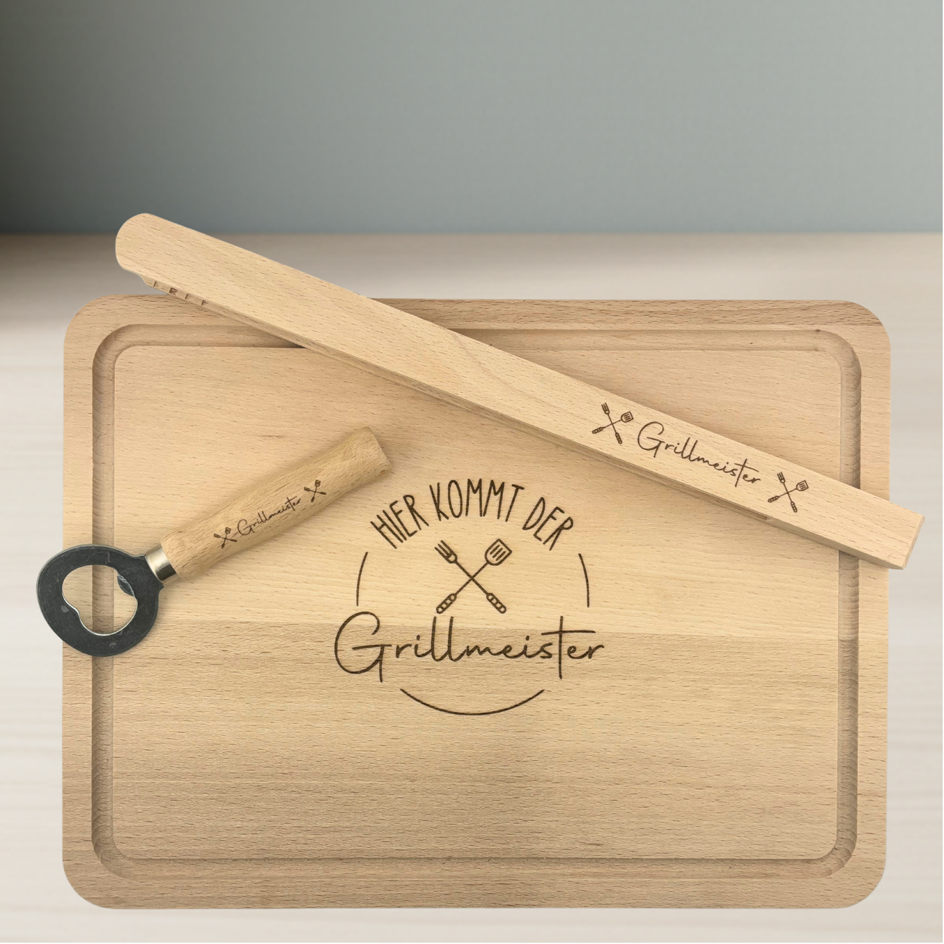Ein echter Grillmeister braucht das richtige Werkzeug – und genau das bietet dieses Set. Aus stabilem Buchenholz gefertigt, vereint es praktische Funktionalität mit einer edlen Lasergravur. Ob Garten, Balkon oder Camping – mit diesem BBQ-Set bist du bestens ausgestattet.