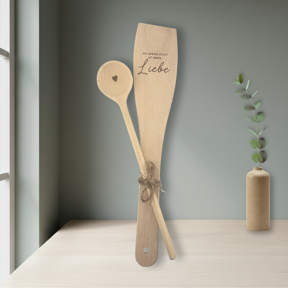 Kochlöffel & Pfannenwender Set aus Buchenholz – mit edler Lasergravur
