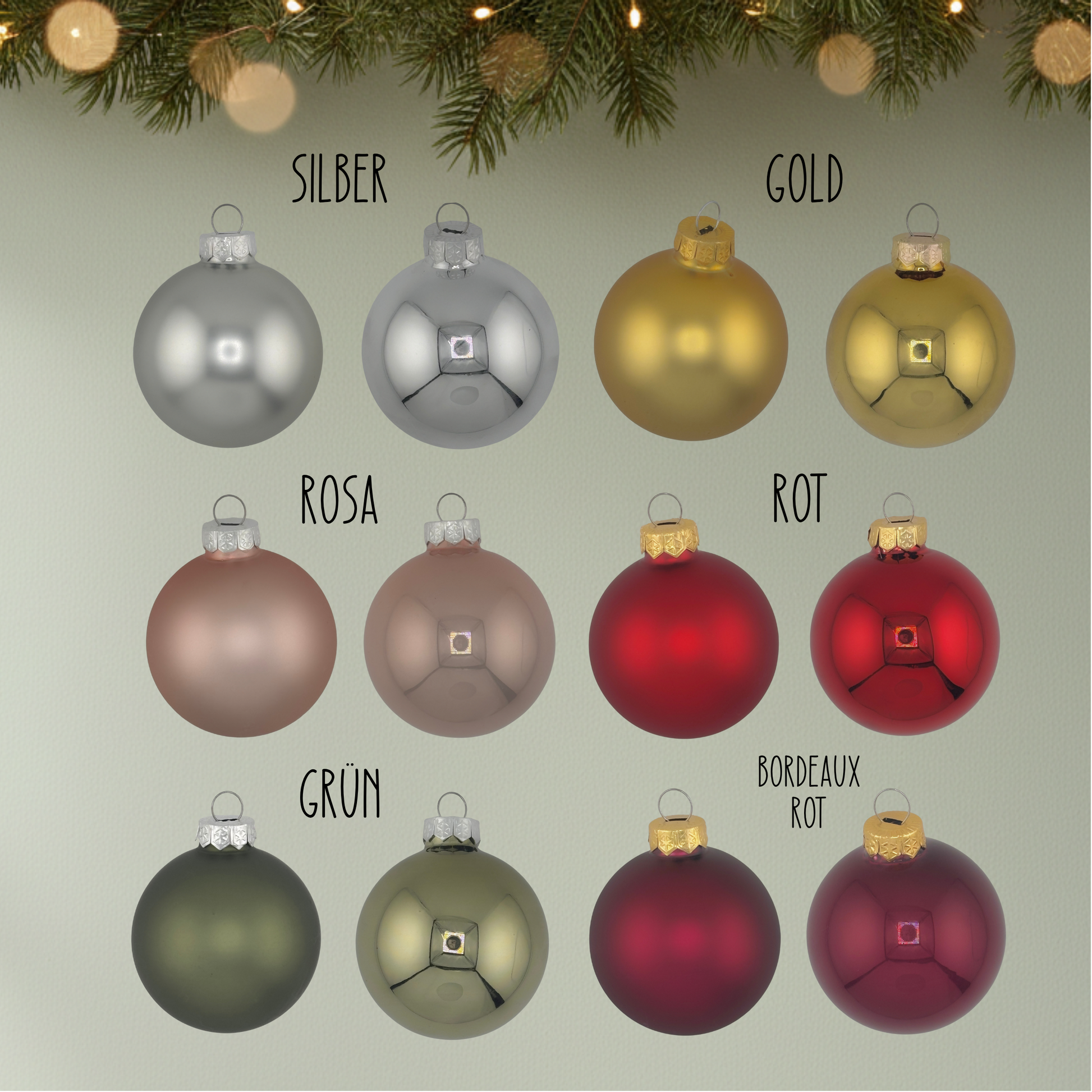 Farben: Silber, Gold, Rosa, Rot, Bordeaux-Rot & Grün – jeweils in glänzend oder matt