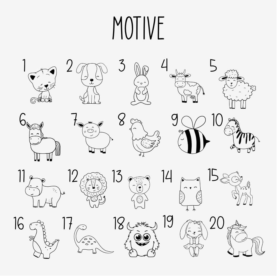 Motive: Dino, Einhorn, Reh, Hund, Katze u.v.m. (siehe Produktfotos)