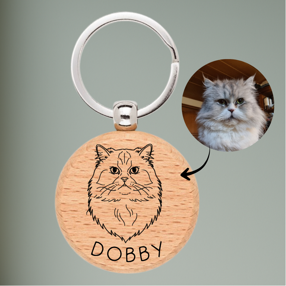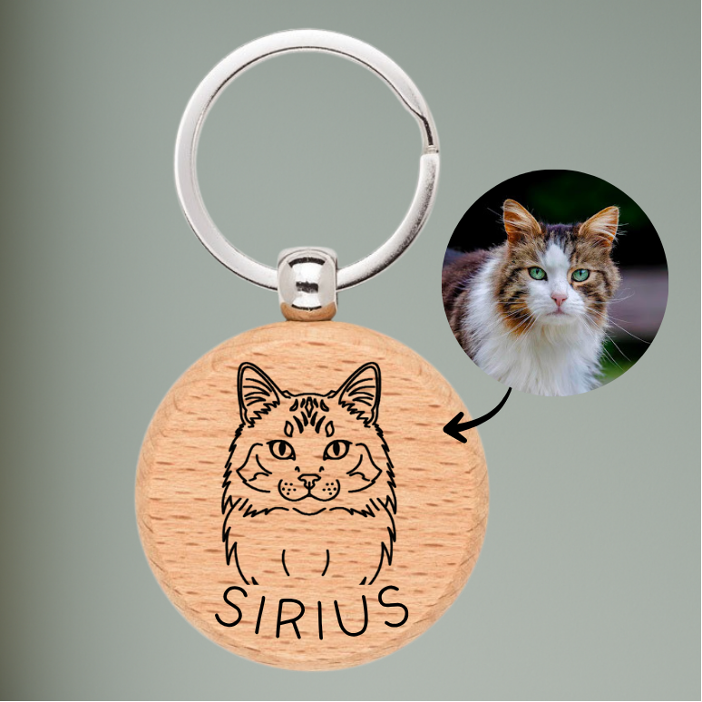 Personalisierter Holz-Schlüsselanhänger mit Tiermotiv | Gravur nach Foto